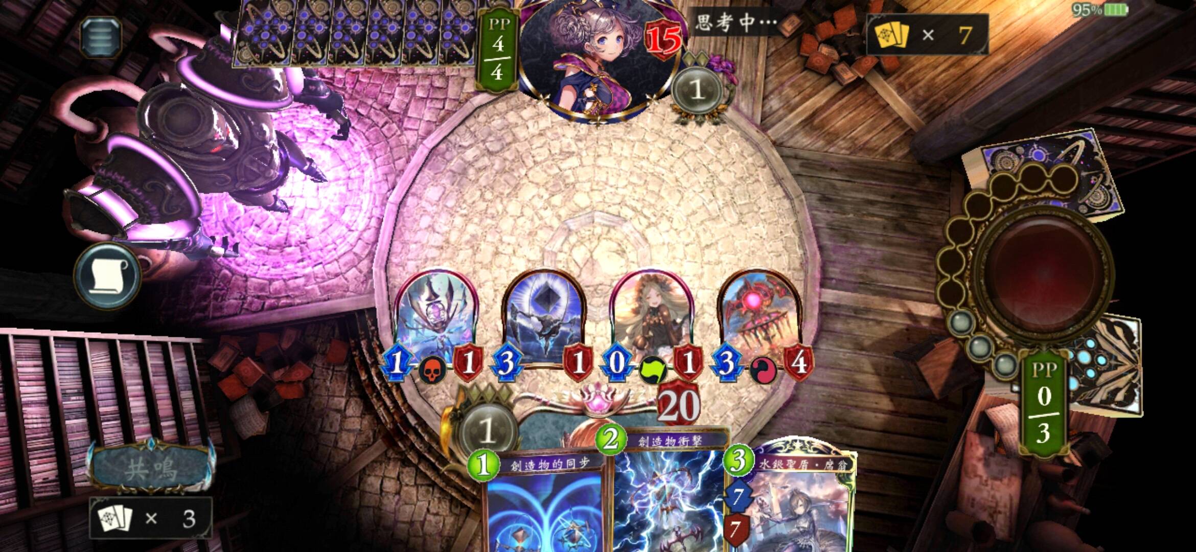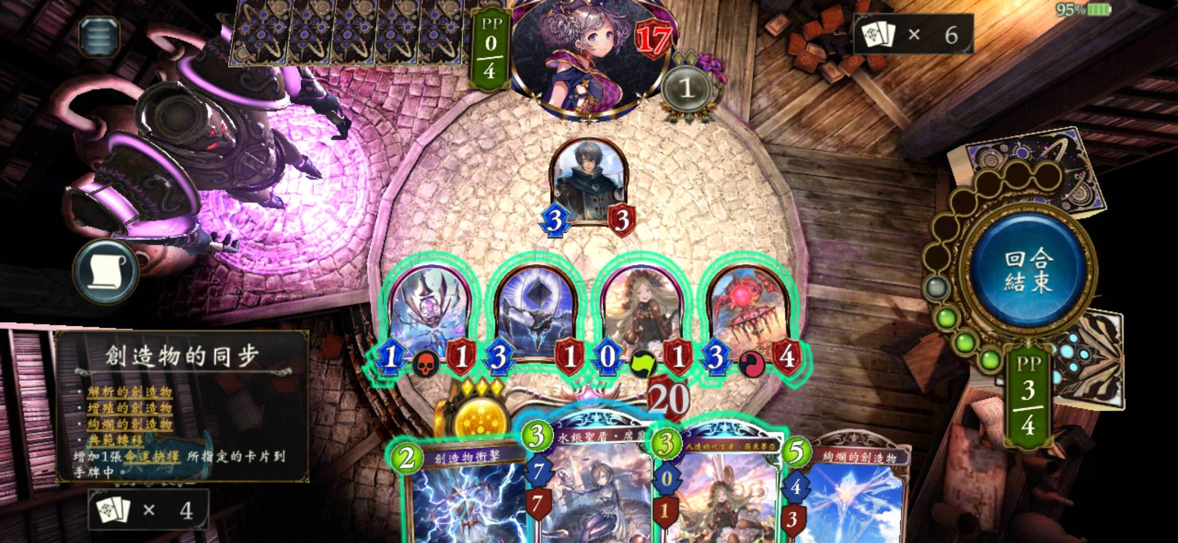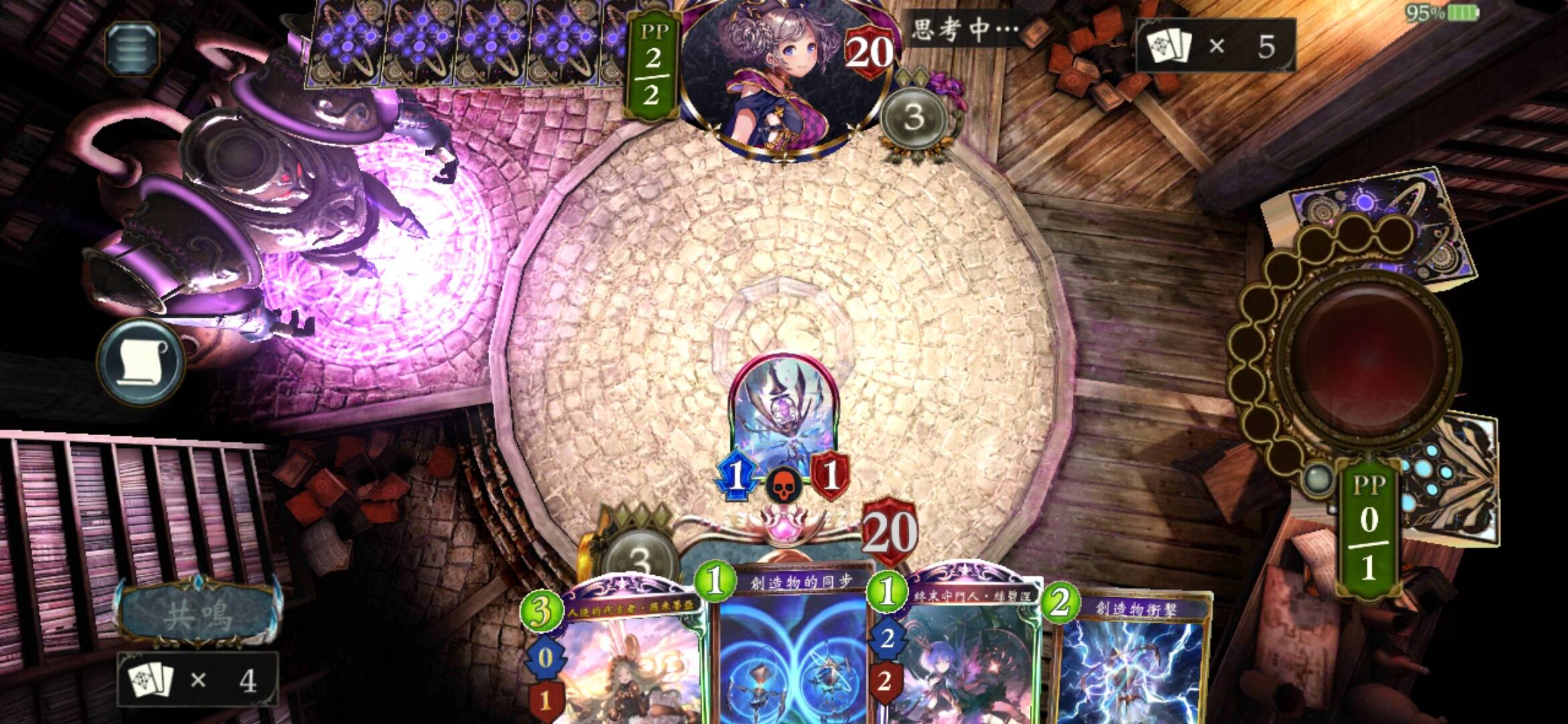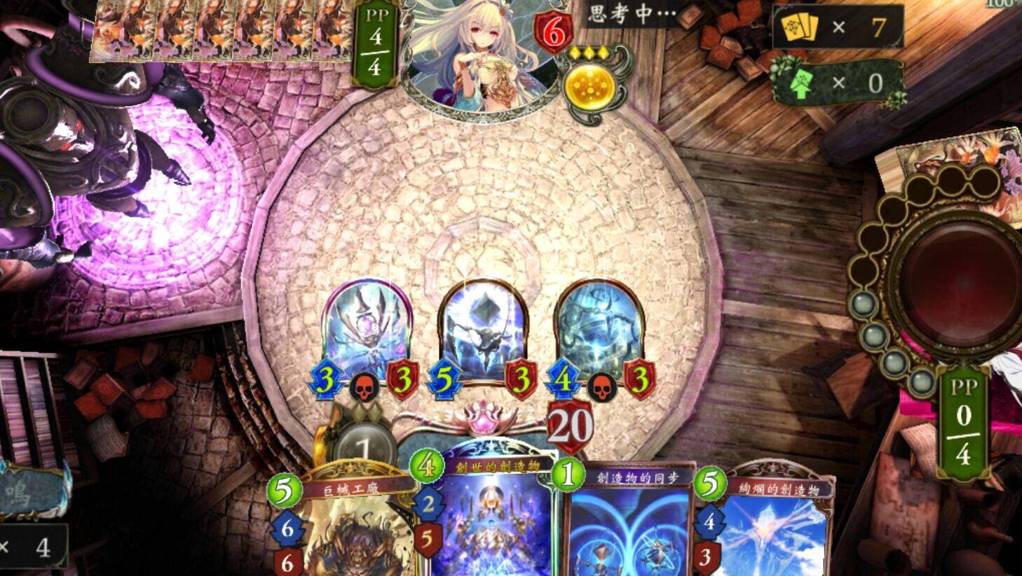 对面1c打了个最麻烦的花园,这张牌并不能确认对面到底是个什么生物,所以这回合还是保证空场,但是右手“神抽“了创创子让我十分”开心“,所以这回合笔者是决定要城主造物配合一张吃来检索一张造物最好是301以及在手里存一个典范来为5c左右回合做铺垫。