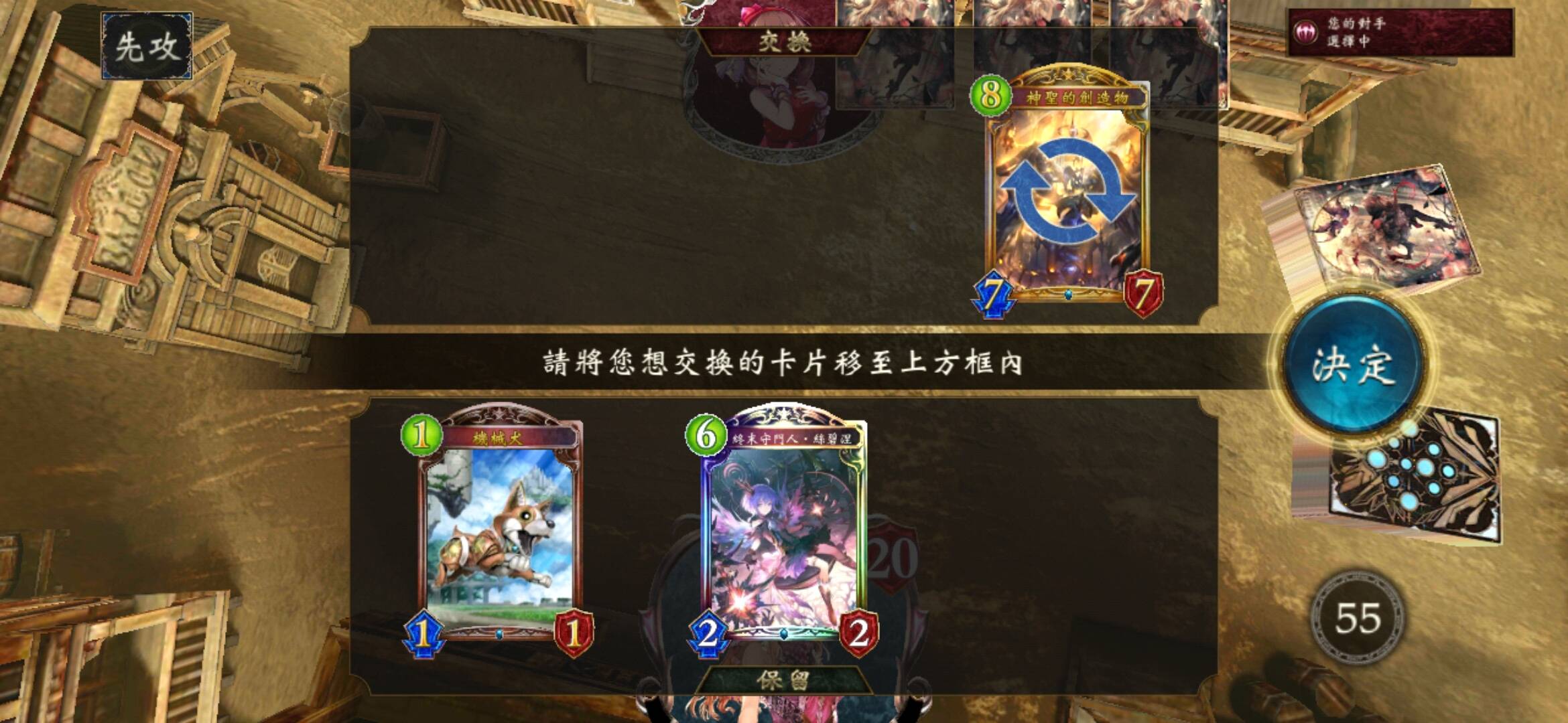 对阵超越扭蛋这种需要尽可能快速结束战斗的时候,在手里没有两种llmy和创造物冲击这些两费动作时,同时也没有城主这张一费站场牌,手里有狗子的话应该拿取121过牌来2c回合润滑前期手牌顺便保证自己站一个31突袭。
