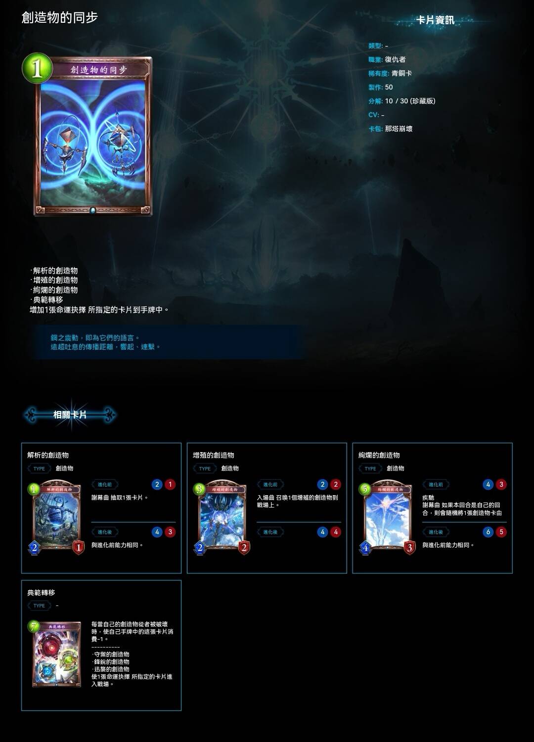 4.301:没什么好说的无脑满三就完事,跟诺神一个级别的假卡,对自己的手速有自信的话甚至可以3c回合配合生命量产和机械的解放来直接进行珠泪级别的前期超展开,需要注意一点的是前期优先葬送的造物顺序 最优葬送造物:877神圣的创造物 接着就是1费拿资源的543冲锋 然后是425创创子。