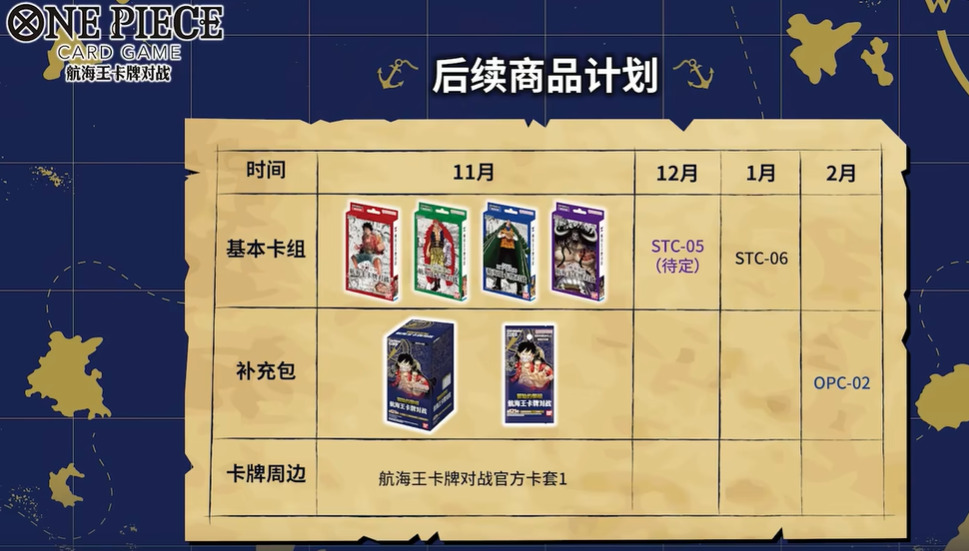 11月即将迎来航海王卡牌对战简中一期产品的发售,包括四款预组以及一款补充包