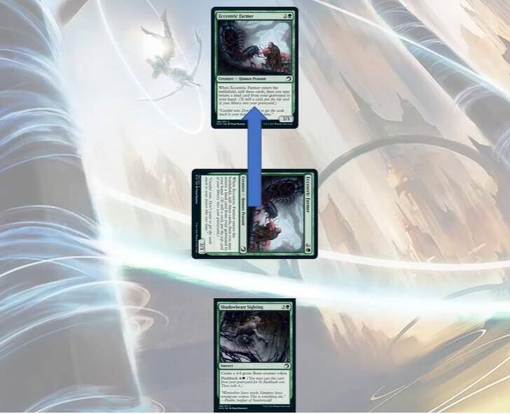 没有损失这里是指,即便对面阻挡了,你的进攻生物也死不了。顺带一提,万智牌的bluff一般指我进攻时手上没有trick,但还是用小生物踢对面的大生物,或者是作出明面上对我不利的进攻。 这里我手里有一张亲睹黯影兽,场上两个古怪农夫对看,我这里bluff进攻不会有任何损失。即便对手阻挡了,我的古怪农夫也不会死,还可以下4/4野兽阻挡对手下回合踢过来的2/3 。如果手里没有亲睹黯影兽就不能说是毫无损失了,因为对手同样可以踢回来,顶多是互相换血。再严谨一点来说,有4/4也不是万无一失。对手手里可能有去除,解掉4/4就可以走脸。综合来看,这里Bluff宣攻的平均期望更高。