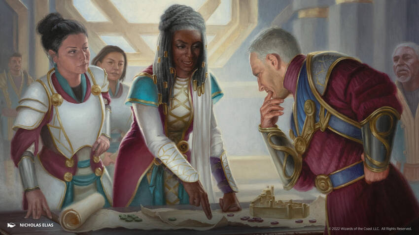 斥侯队长穆雷尔上气不接下气地绕过长廊,身后跟着两名她的斥侯。他们的眼睛炯炯有神而且双颊红润-肾上腺素,冷天:行动。「凯拉女王,我们得护送您到安全的地方,」穆雷尔气喘吁吁地说。「那些行军者正打算进犯这座城市。」
