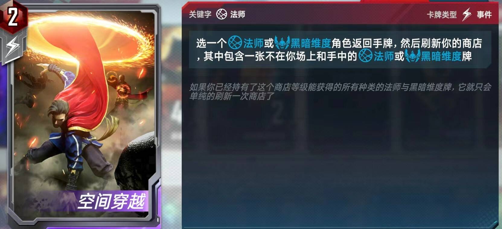 速趴斯克鲁人和万能的互动很有意思,既能用斯克鲁变形学习四侠的技能,还能吸收关键字(炉石里的融合怪我可太喜欢了)这才是真正的万能装甲吧。这套卡组我们追求的是斯克鲁的上限,那么神奇四侠是一定要全带的,已知斯克鲁依赖打出效果,我们都知道纳米共生体能回手,但可惜斯克鲁带不了,在找来找去之后我发现了两块钱的神卡空间穿越