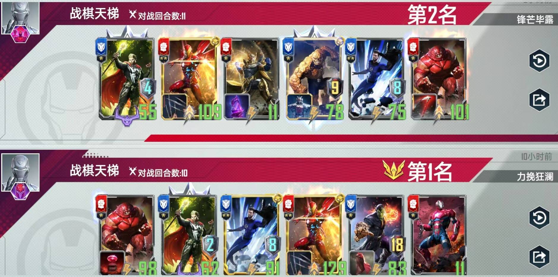 本人是开服就专玩钢铁侠卡组,喜欢自己组卡的微氪玩家,id为疯狂的我10401006,由于开服时我优先抽钢铁侠的卡包,所以在我抽齐一套万能之后,基本每个赛季都用万能卡组打上了王者。(中间有几个月没玩)随着版本更迭,万能的身材发育速度严重落伍,根本不够看,连和他同时期的美队数值都翻倍了,万能依然没有得到什么大的加强。所以我认为,想玩万能,就必须把身材加到那种一点身材能当十点身材用的随从身上,才有资格和这版本的妖魔鬼怪比划比划。万幸的是,这版本的速趴斯克鲁人和神奇先生的加入变相加强了万能,我也一直在研究斯克鲁人的上限玩法(其实我本来以为把万能变成神奇四侠就可以回手万能,学万能的技能,做出来一个先制刺杀暴击贯穿坚甲的斯克鲁人,但实测不能)。在参考了营地各位大佬套路,自己组卡一路连败摸索打法后,前几天我也是用这套万能斯克鲁人打上了个王者。