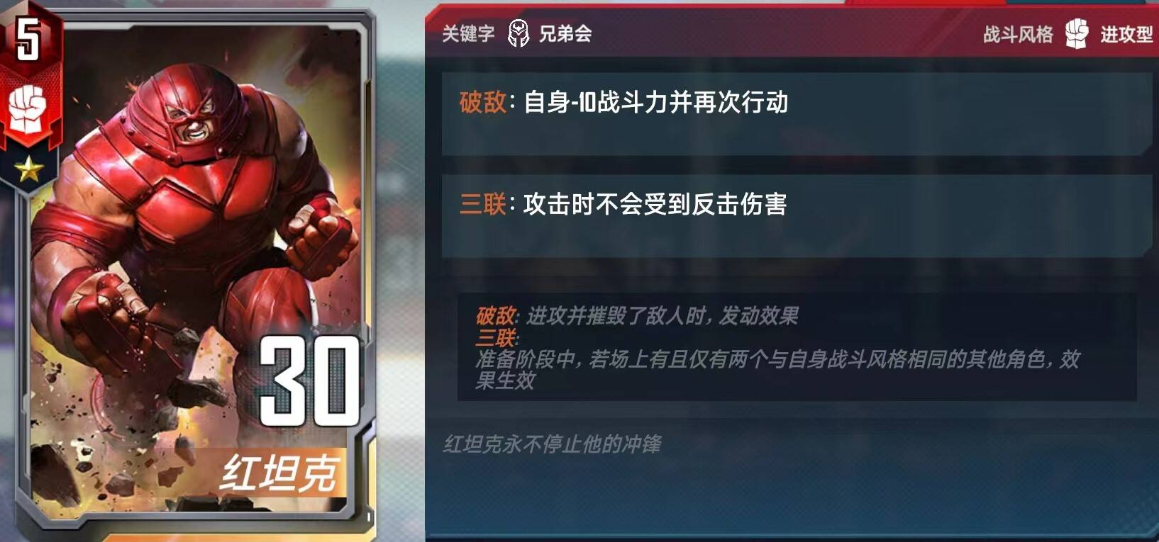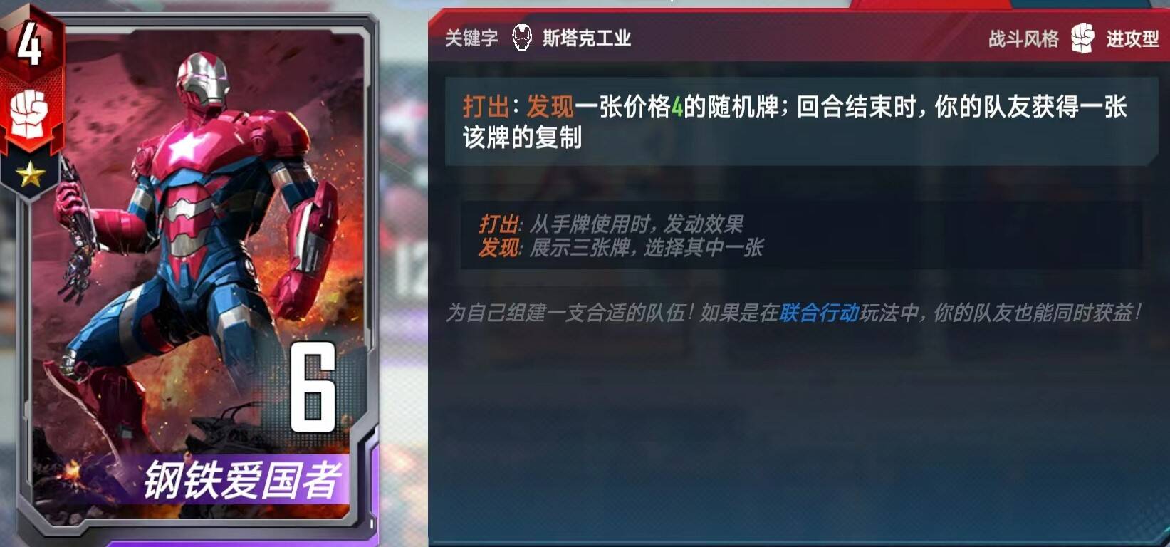 经过我一路连败摸索尝试,我认为以下是最稳定最合适的玩法。神奇四侠卡组当然是要速四的,第一回合除非来了两张吸收人、环戒、空间穿越之类,否则不升本。二回合上三先拿非锁定卡,三回合除非来牌特别好,三张三费非锁定,否则直接上四本滤卡,等神奇先生。(注意不要把蟾蜍的buff加给巫医)四本前不要搜牌,把经济都留到战力和找神奇先生上,四回合选技能主要选钱多的能加即时战力的。选完技能见到非锁定牌就能拿(没万能先不拿爱国者,不养巫医不拿蟾蜍飞跃和山火,前期没带装备先不拿种子·)见到绝境装甲了记得拿到手里,不然他就一直出现在商店里烦你。中期拿到神奇先生就可以上五本,但就算拿不到,六回合也要上五本。我们五本主要是拿斯克鲁变形(如果没有神奇先生就先不拿)和精准暴击万能,喷火器刷到了不差钱就拿,给黄色四费工具人比如默多克装上能单杀雷神。注意拿到斯克鲁人前手里要存至少一张空间穿越。