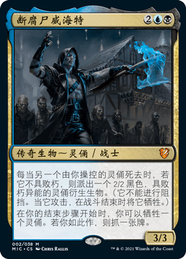 这套之中除了主将和三个大哥无可取代之外,其它组件都在套牌中有着替代品:额外的生物可以通过死冥双身得到,榨取生物中头颅尸嵌可以提供额外的生物,溢电拼合怪更是随时可以被掘出来当作反击使用(甚至能康异能)。
