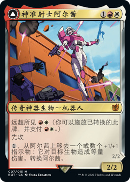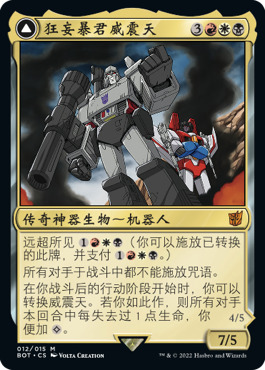 正如你所认识和喜爱的变形金刚一样,这些牌都可以从机器人变形为载具或替代形态,然后再次变形回原状。而借助远超所见异能,你可以让它们以替代的非机器人形态直接进战场!