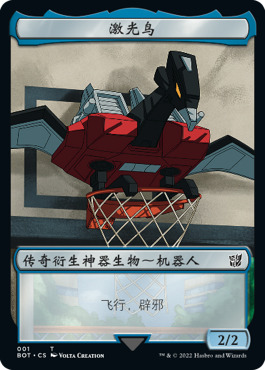 变形金刚牌张使用系列代码「BOT」,并有其系列符号。这些牌不可用于标准赛,但可用于指挥官、薪传与特选赛事中。