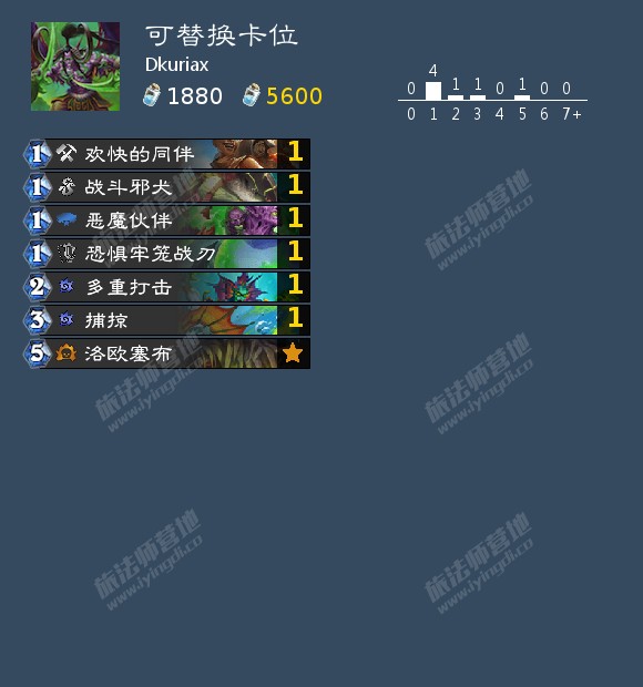 恶魔伙伴:1费准时打并不算很强。最想要的是雷欧克克欧雷,在打德鲁伊这种叠甲不解场的时候有奇效。偶尔可以配合赛丝诺女士把她变成3攻。可替换卡位。
