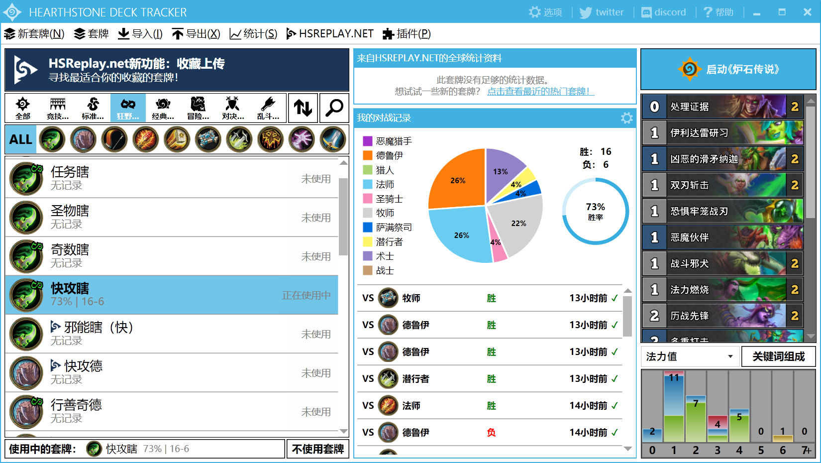 凭借10星,笔者用任务一刀瞎快乐划水(输多了就用奇数瞎打几把)到钻5,然后被大量奥秘法按在地上摩擦任务都给我反了还有满血破冰谁懂。于是选择加入,但是内战没同行胡打控制又不来艾露尼斯赛格会断牌,胜率刚好50%原地转圈。前天在狂野日报上看到小林的这套快攻瞎(但是没有任何打法介绍),加上笔者在标准玩的相同主体的快攻瞎手感不错打不过猎人,决定尝试上分,然后一张不改轻易上传。