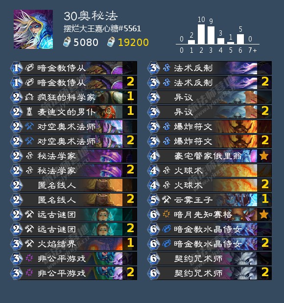 摆烂大王嘉心糖#5561,30奥秘法,33场70%胜率。