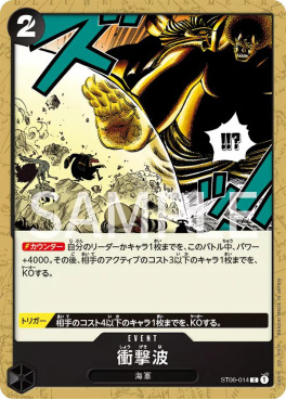 ⚡反击⚡选择自己至多一个角色或者领袖,这个回合中,力量+4000,那之后,选择对手一个竖置的cost3的角色,气绝