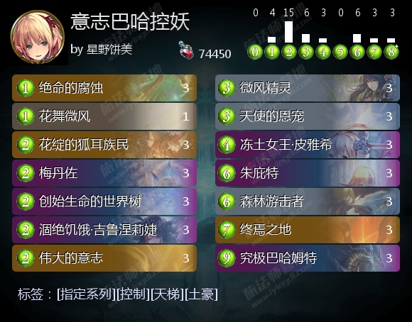 自从治愈妖精退环境,巴哈控妖这个曾经一度很常见的思路便消失不见了。不过,这并不意味着巴哈控妖完全无法立足了。经过调整组件后,她依然能用于针对特定套牌,并缓慢上分。