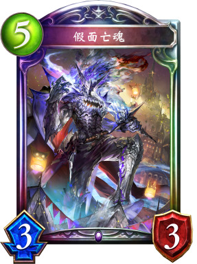 作为怨灵体系的核心,假面亡魂能在触发谢幕曲的下个回合以不消耗费用的方式登场,配合其他怨灵制造者打出高伤害。在前期抢血顺利的情况下,假面有机会在第6回合完成斩杀,而即便无法做到这点,他也能召唤大量巨型狂灵,制造对手不易处理的场面。灵体入侵、小鬼怪·帕克鲁斯、统率灵魂和吊魂的幽灵船都能召唤怨灵,支持假面。