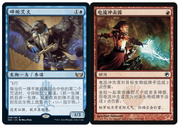 首先我发现这套牌大多数时候手牌都会有些当前手牌-1的单卡,复数的传奇,更多的地,和全部的辗碎工段,而非常多的0费1费咒语让碎帐艾文的筹谋极其简单,这两者综合的结果让我一定想使用满编的碎帐艾文。