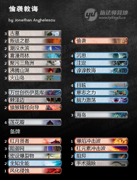 备牌局控制如果能抓到多张花之毯我肯定这个对局对控制有利。(译者注:此处存疑)掘密师有癫狂巫咒、黠智宫廷、揭帷娜尔施和打4c/5c的进步的代价,但都吃控制备牌的红蓝波。