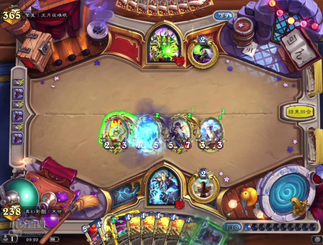 心火牧(剑宗),就和他打场面,轮转留着给那种很难处理的随从(328、风怒鱼),尤其是风怒鱼,他手牌多的时候千万别留下后患。