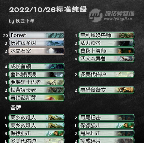 可能真的很久不提供内容了,自从工作之后玩牌更多的是娱乐,不管是炉石还是万智我都只能在线上自娱自乐,曾经成为职业方面的**早就自己斩断了。不过最近稍微轻松了一些,晚上终于能直播一会打牌了,所以练牌量也算是上来了。今天就来推荐一套直播时候战绩非凡的纯绿套牌。