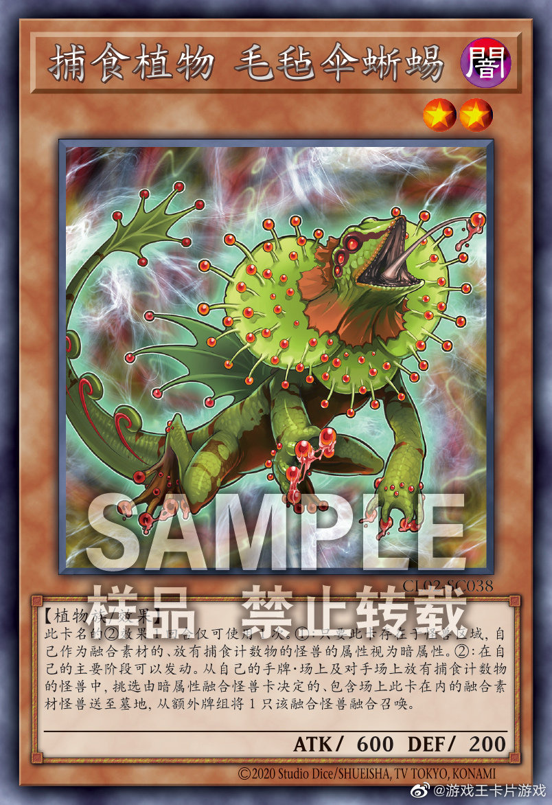 游戏王 决斗怪兽 经典包02(简体中文版),11月26日发售!我引以为傲的卡片啊,再度展现你的身姿,续写新的史诗吧!本次为大家带来的预览卡片为经典包02收录卡片,『捕食植物 毛毡伞蜥蜴』!