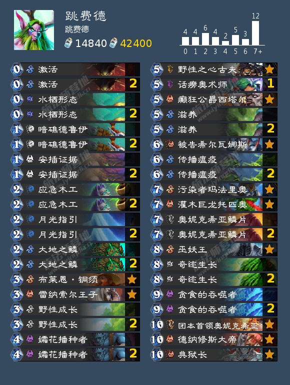简单的卡组,跳费之后获得优势和快乐,我天梯遇到了一大堆德,冰封王座回归的牌主要是补强了中期德的抗性,从现在的构筑和德的过牌能力来看,终极感染反而会有点卡手,不如中期能顶住的传播**。巫妖王算是一张曲线牌,除了身材效果都非常强大之外,跳费之后准时能压住场面也是优势。后期的获胜思路主要是围绕典狱长和德纳修斯大帝展开的,可以简单理解成跳费之后拍大哥。