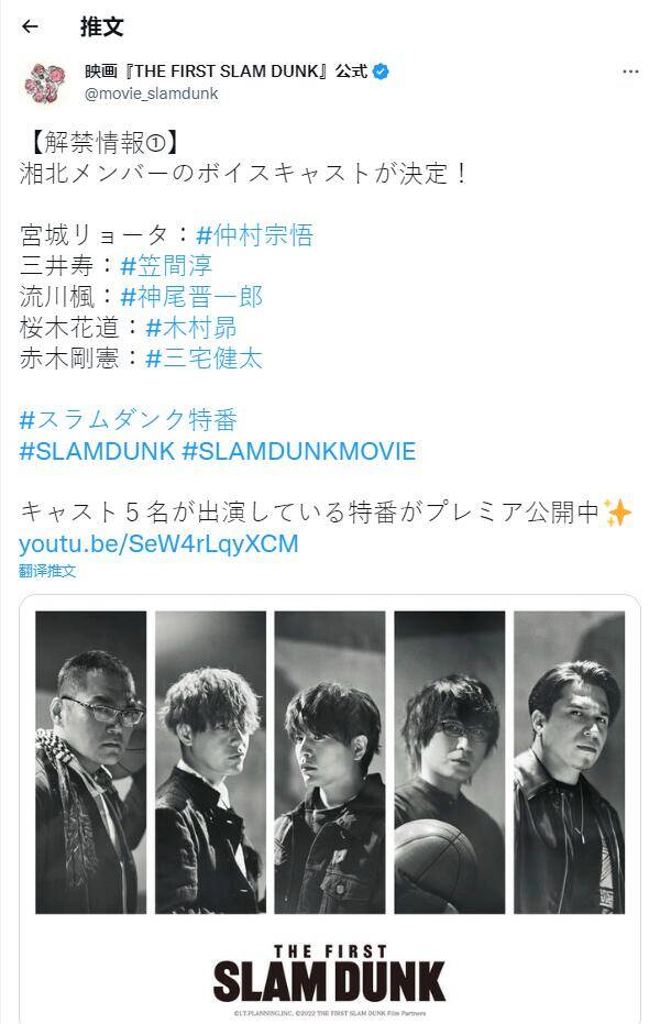 《灌篮高手》全新动画电影《THE FIRST SLAM DUNK》新声优阵容公布。