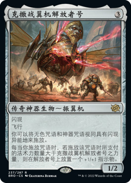 “明明是克撒的神器,说能让你闪现地用神器咒语就完了,非要多一条无色咒语也可以闪,这不是明摆着威世智想让我闪奥札奇吗?”以前我在神器套牌里用烁光秘耳,这个看起来比烁光秘耳还要更厉害一些。神器主题套牌都可以带,纯纯的无色也给奥札奇主将爱好者提供了便利。