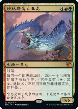 结石亚龙的异能能被其他牌手的地落触发,因此在多人中还是有用武之地的。6费勉强可以接受,因为颜色并不是很深。虽然派出的魔力石除了能反复使用以外怎么看都不如珍宝,但也是聊胜于无了。我对着张牌最大的担心就是你出了个它,造了一堆躺着的石头,然后还没到你时一位对手使个码头哥,造了海量珍宝,你还不能响应把自己的魔力石掰掉。这感觉就是花了大价钱给人做了嫁衣,有点得不偿失。