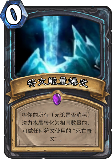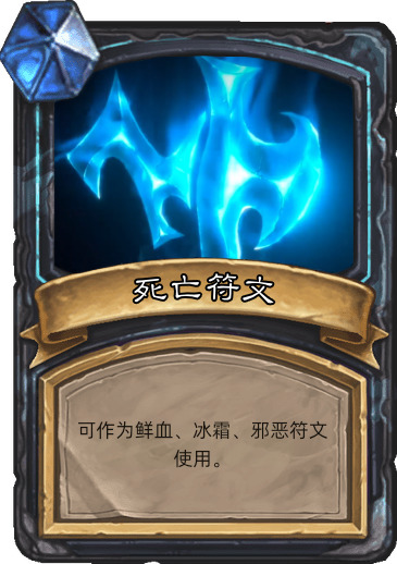 死亡骑士大部分的职业卡牌(尤其是强力的卡牌)往往都是需要消耗各种符文而不是法力水晶的,因此很多职业牌都需要先将法力水晶改为消耗符文才能打出,例如: