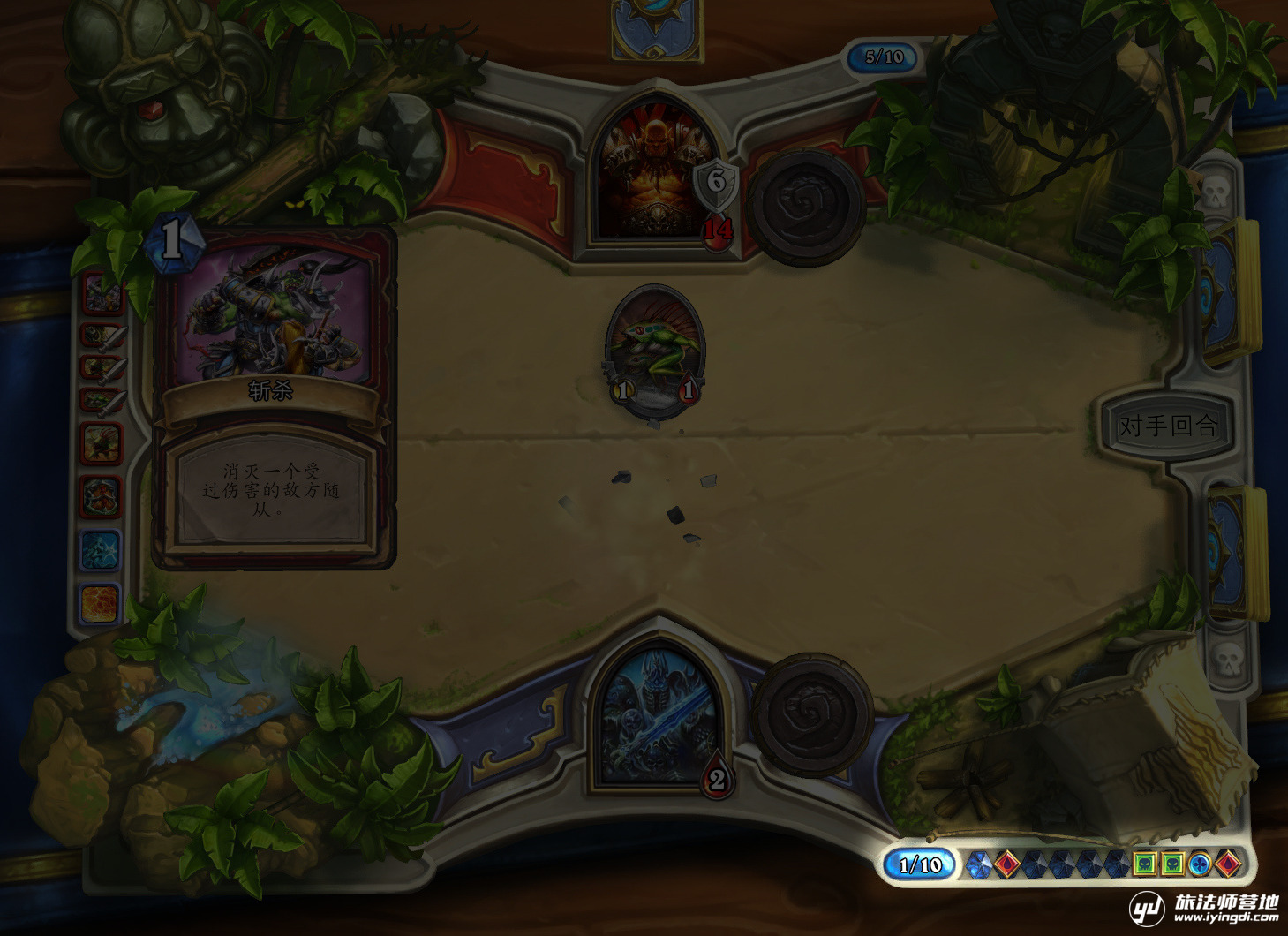 从上面图中我们可以看到,选手在之前转换多个符文之后连续鬼抽,导致最后面的邪恶、冰霜、鲜血符文一直没有被消耗,所以被对面选手揍到了1血,无奈之下在前一个回合将一枚水晶转换成鲜血符文,增加了1点生命值保命。希望他下个回合能够抽到消耗2个鲜血符文的保命技能扭转局势,毕竟消耗鲜血符文的法术都是跟生命恢复能力密切相关的。