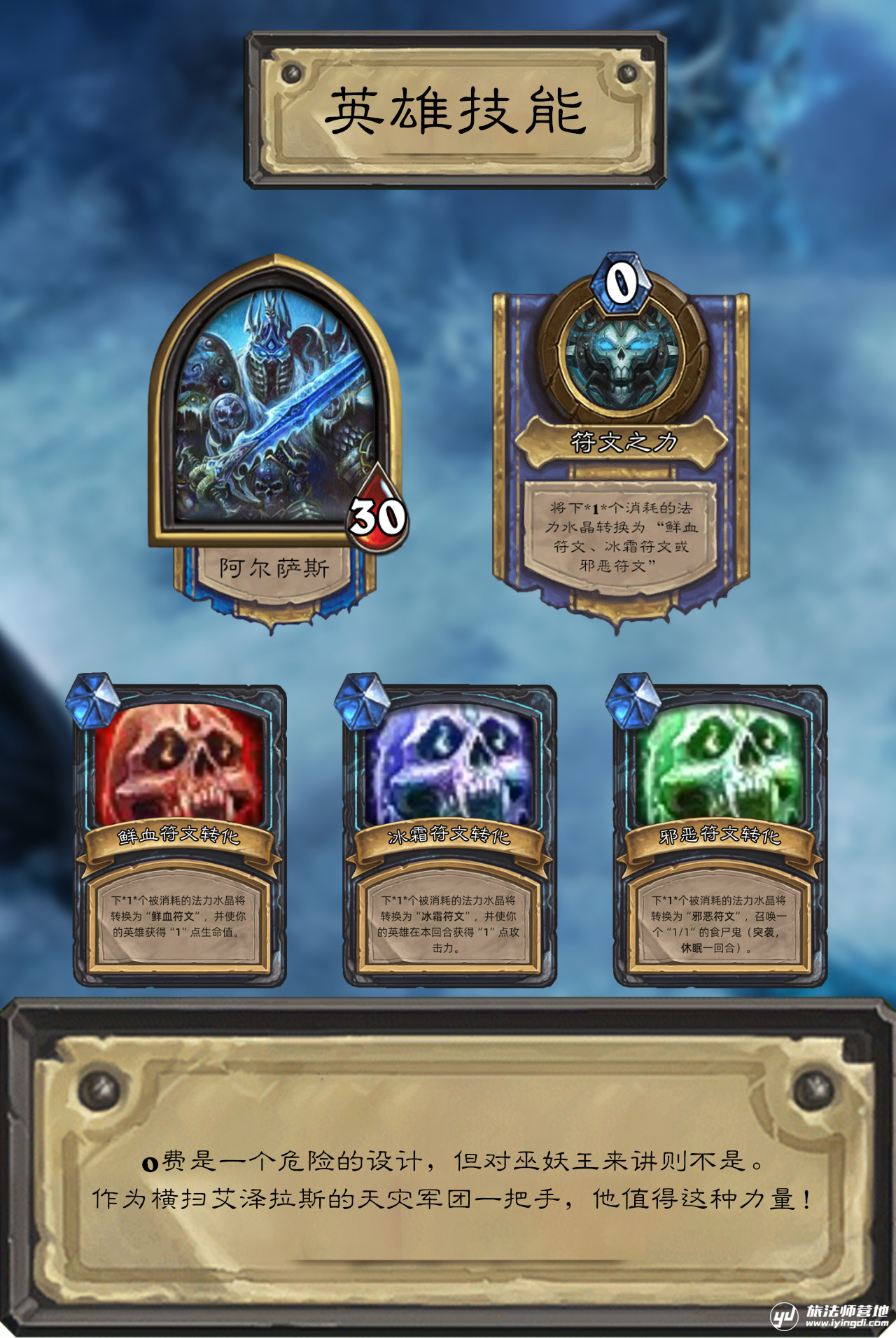 “0费是一个危险的设计,但对巫妖王来讲则不是!作为横扫艾泽拉斯的天灾军团一把手,他值得这种力量!”——设计人员激动的拍打着桌子。