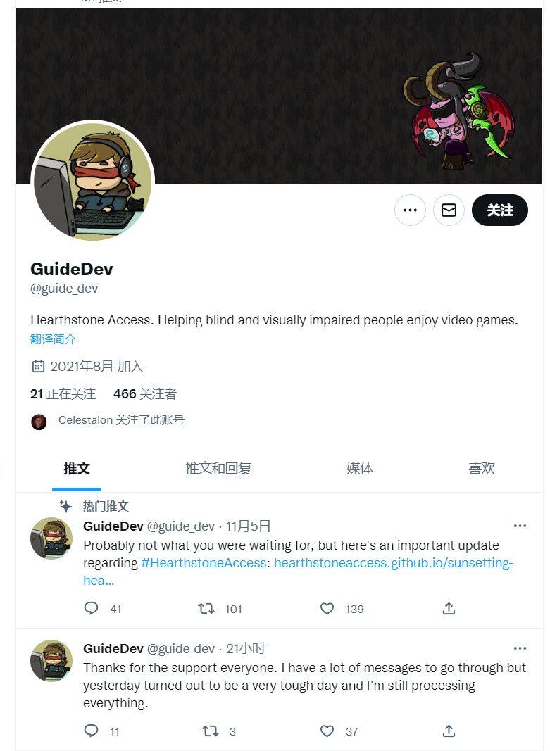 以下是外网对HS Access的介绍和开发者Guide Dev的采访,里面有一些关于视力障碍玩家社区的信息介绍。