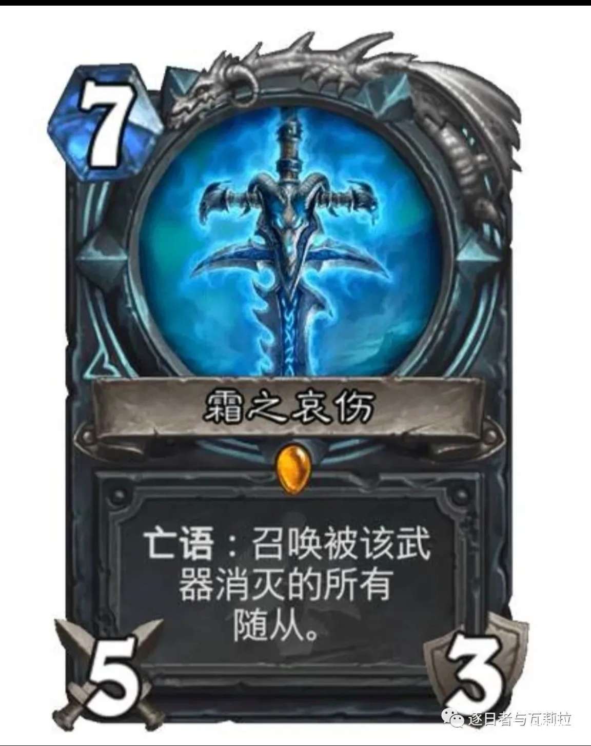 点评:dh有蛋刀,dk就得有霜之哀伤,总体和原来巫妖王衍生卡没有任何改动。