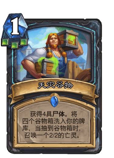 获得4具尸体。将4个谷物箱洗入你的牌库,当抽到谷物箱时,召唤一个2/2的亡灵。