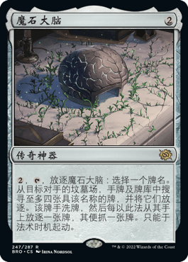 在没有手术摘除的赛制中,魔石大脑是你对抗组合技的最新方案。它的神器类别也让大家联想到它和万创卡恩的配合。总计四费来完成整个操作可能会影响节奏,但有办法肯定要胜过没有办法。
