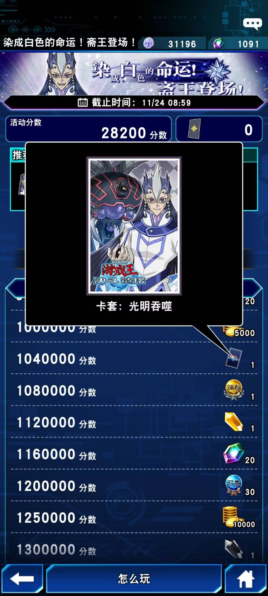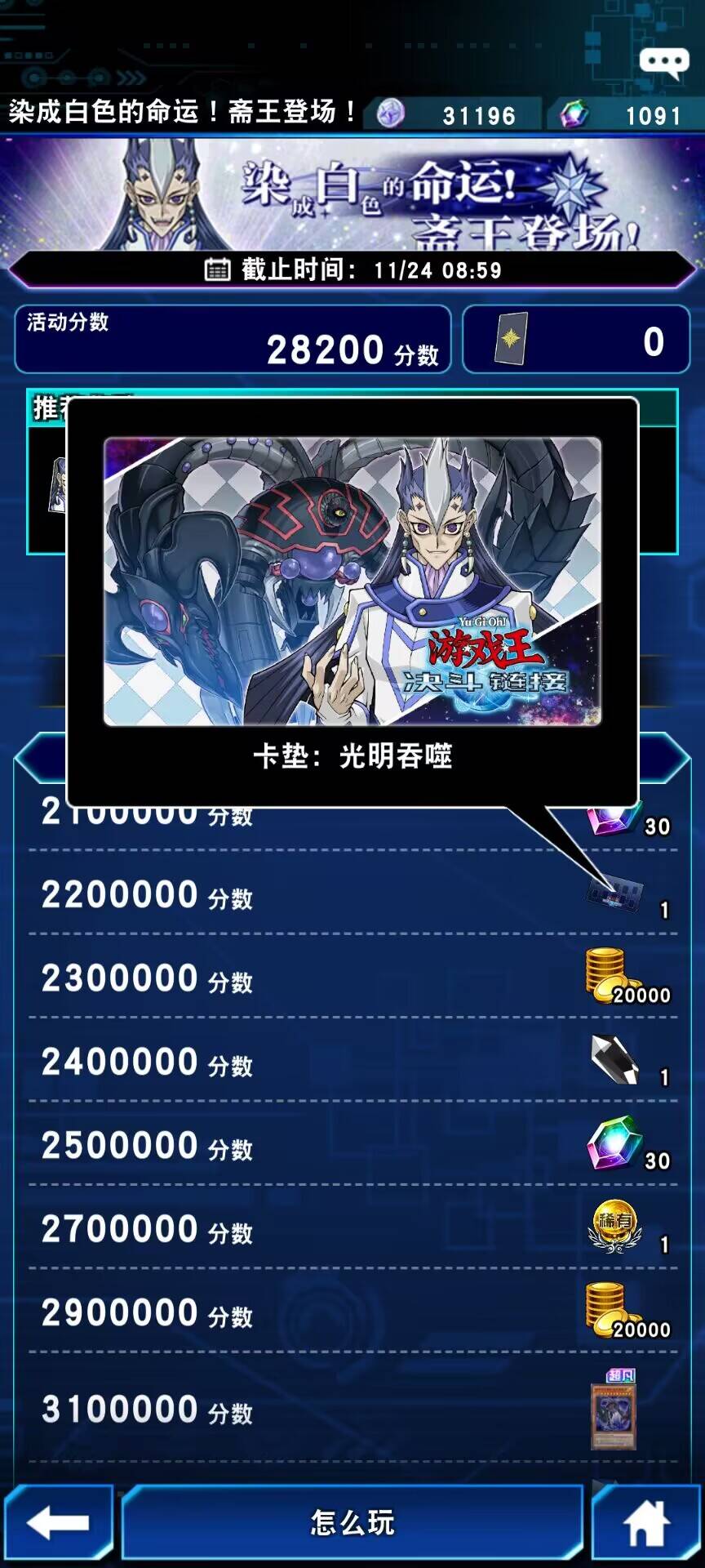 与斋王琢磨进行决斗,就有机会获得超凡卡「黑色炸弹球」「秘仪之力EX-光之支配者」、稀有卡「秘仪之力XIV-节制」「秘仪之力Ⅲ-女皇」等卡片,以及宝石、金币等奖励!