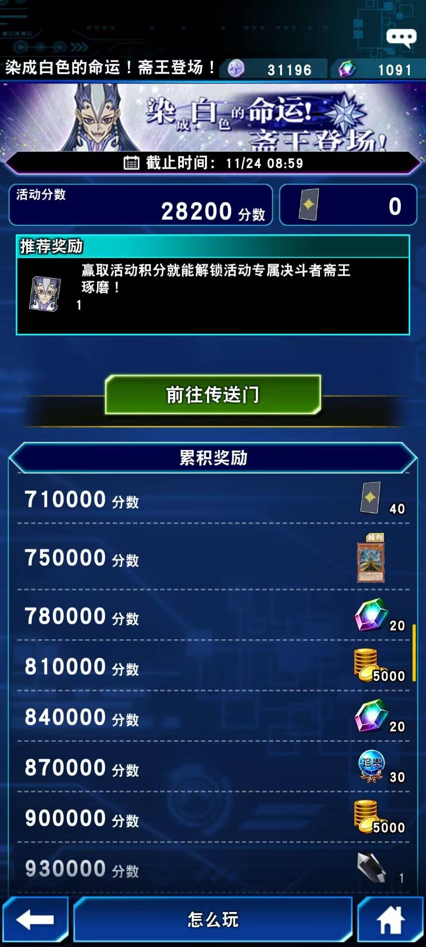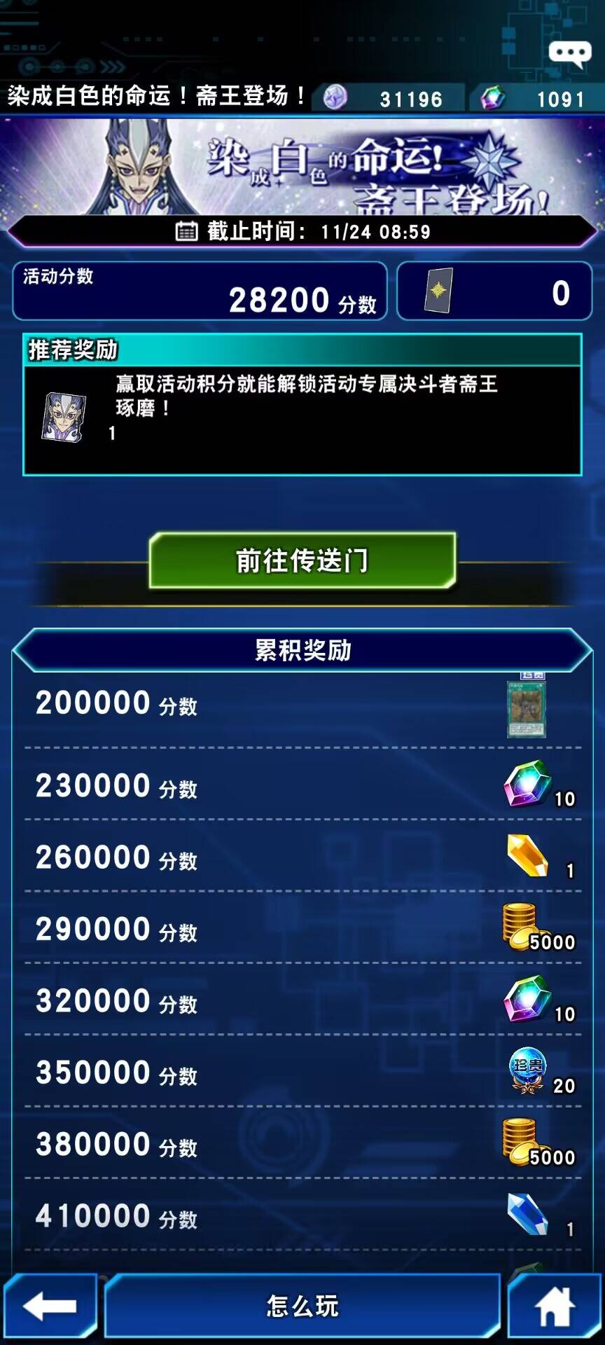 11月10日开始,斋王琢磨将会出现在决斗世界。