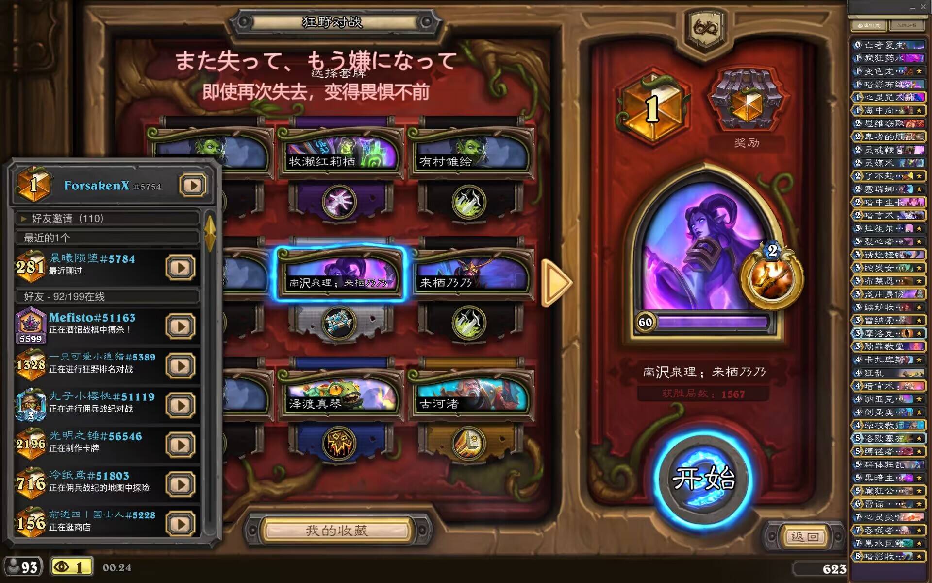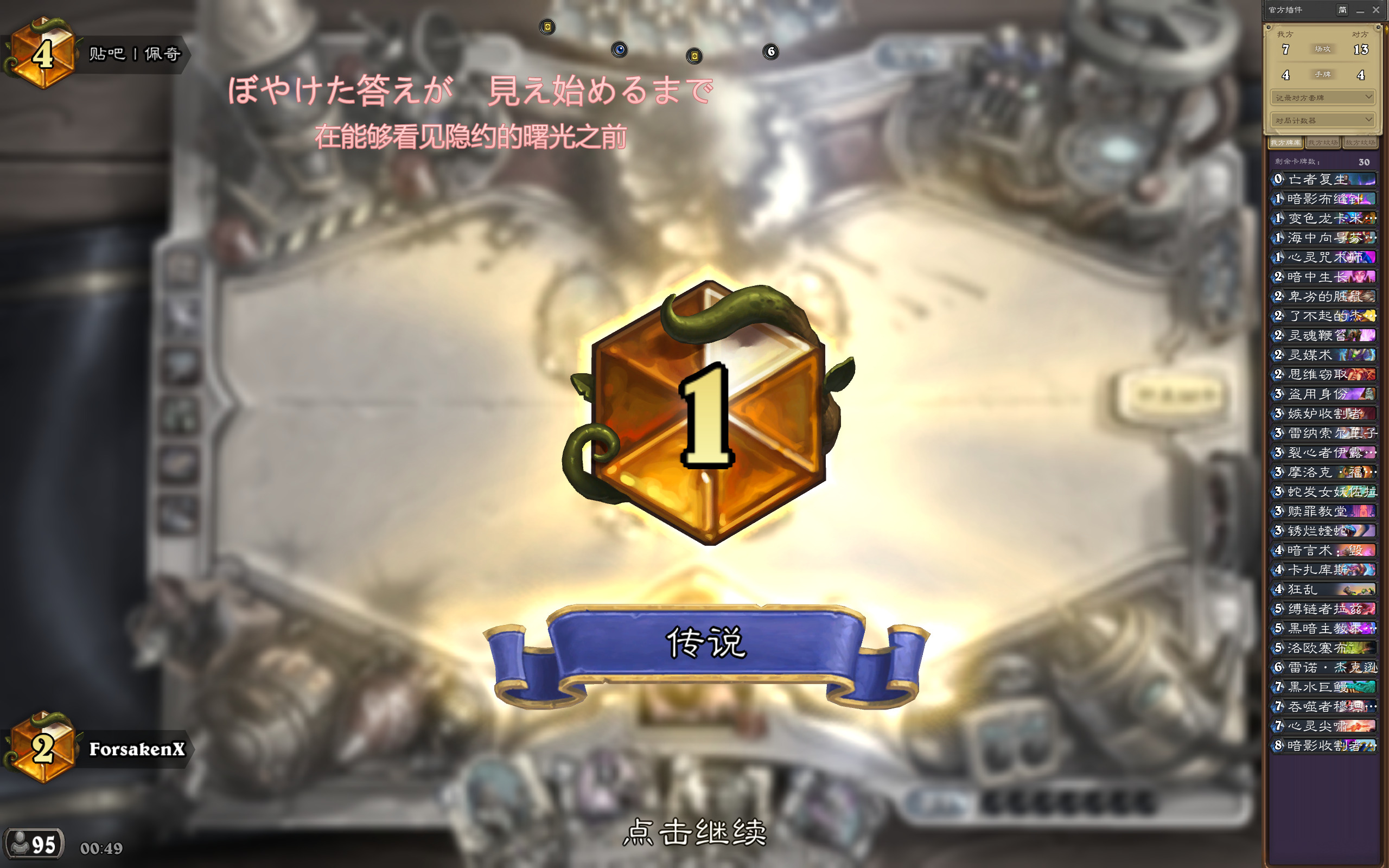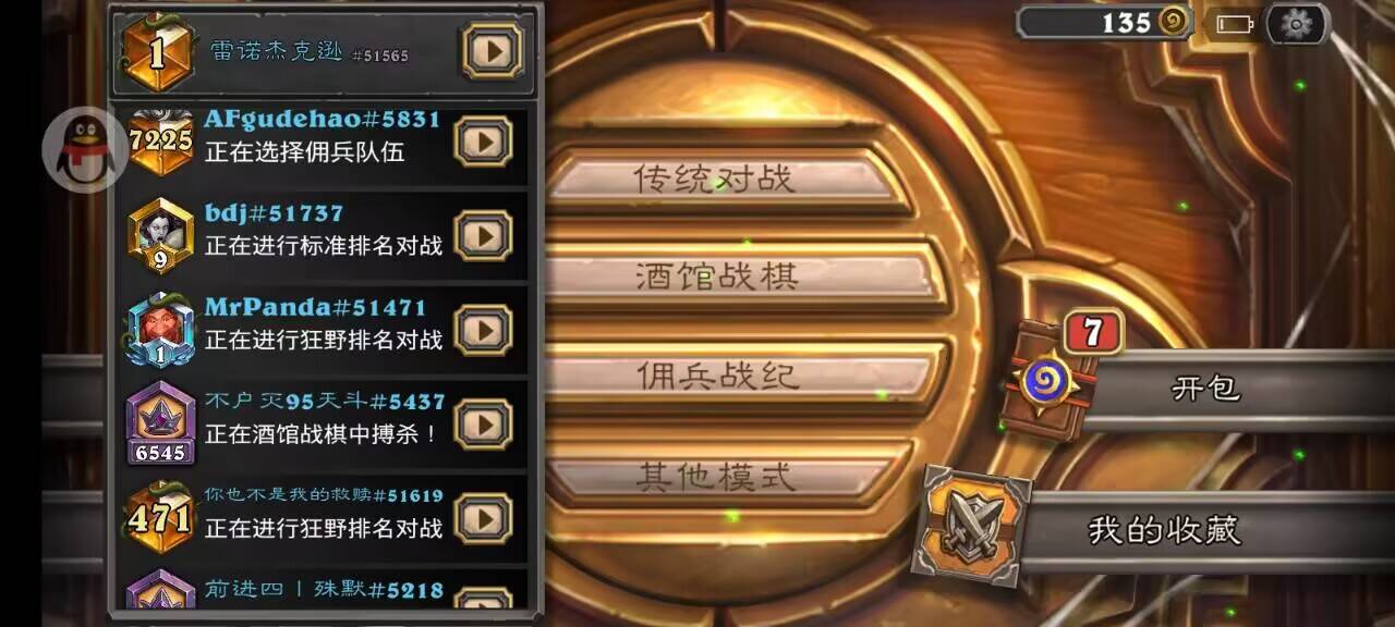 今天的卡组有快攻瞎、宇宙术、宇宙暗牧、机克术、恶臭瞎、宇宙控制法、铁拳术。