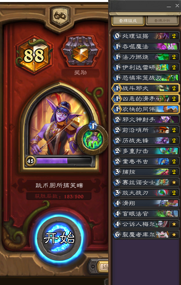 投稿人在10月份也一直琢磨这套卡组,当时只有52+%胜率,11月环境快攻更少,对快攻瞎来说是有利的,但其食粮——抽牌德也几乎绝迹了,不过总地来说,环境变得更利于快攻瞎生存了。