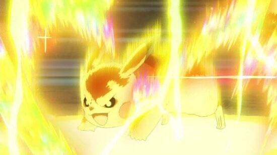 皮卡丘奇迹一串二,战胜闪焰王牌,喷火龙,赢得比赛,25年冒险终登顶。皮卡丘回忆中,曾经的伙伴一一浮现,奋力起身爆发,“目标是宝可梦大师”的背景音乐响起,粉丝们全部泪奔。