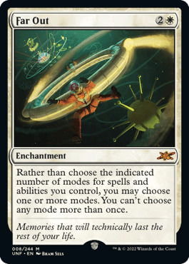 【规则】每当你需要为你所控制的法术和能力选择模式的时候,你可以选择一个或多个模式数量,而不选择所指定的模式数量。你不能将同一个模式重复选择多次。