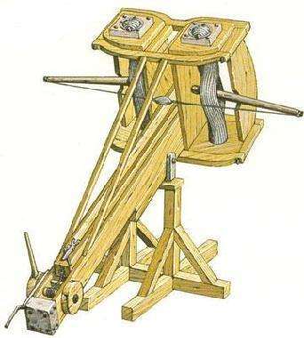这张卡捏他了投射机(Ballista),又称扭力弩炮。小型的投射器又称作蝎炮(Scorpius)。从卡图可以看出这只怪兽造型上也有蝎子尾的元素。