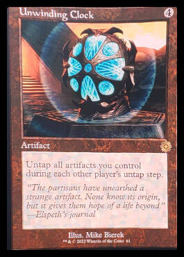 2GGWWUU,从你的坟墓场放逐~:将任意数量法术力值等于或小于10的目标神器牌从你的坟墓场移回战场。只能于法术时机起动。
