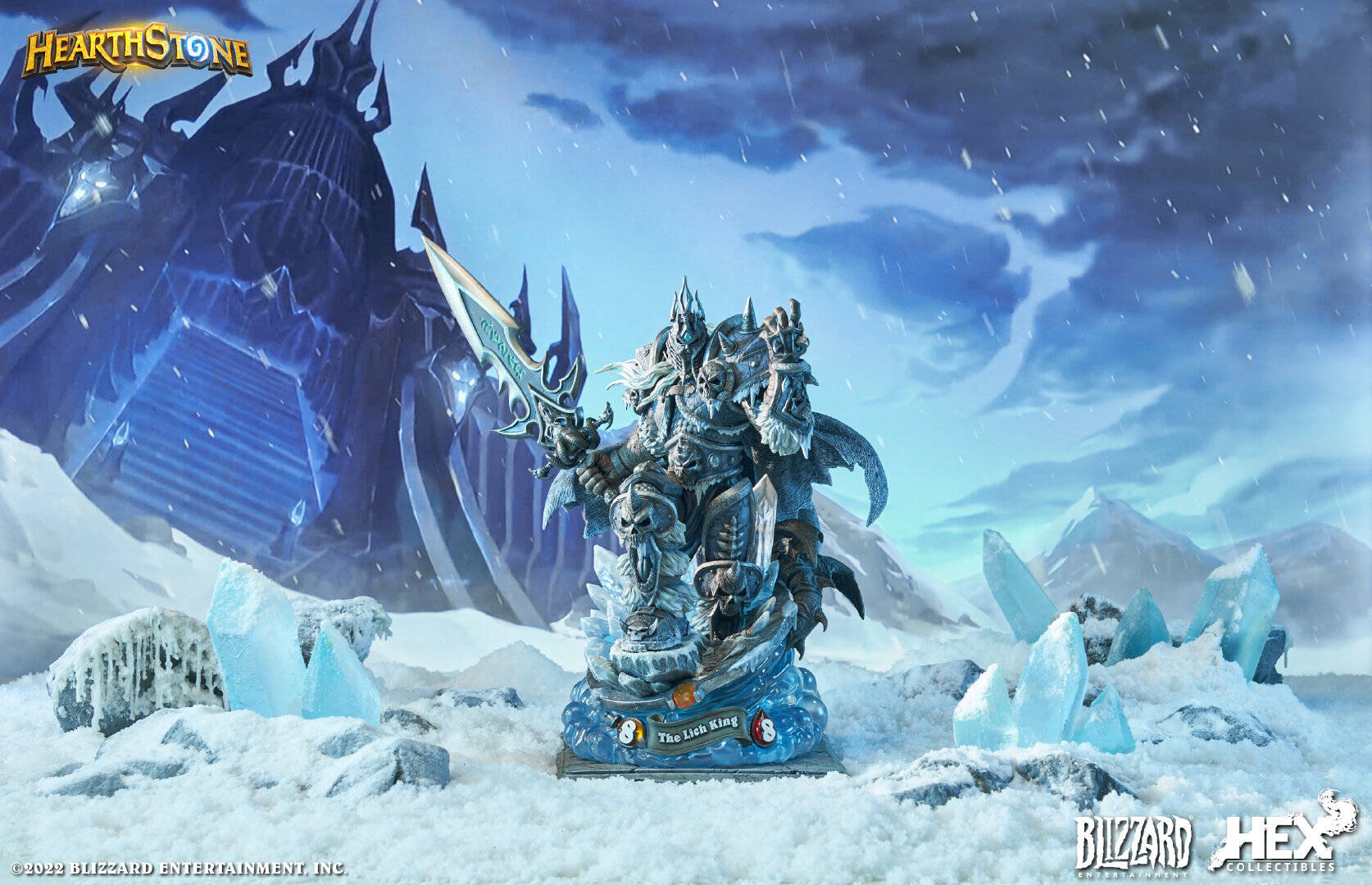 来自中国的线索也不缺席,其中最有想象空间(或者说最没有想象空间?)的就是上周开启预售的暴雪和HEXCollectibles的联动周边,赫然是个炉石版的巫妖王。