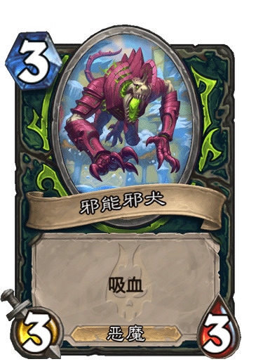 召唤两个3/3并具有吸血的邪能邪犬。如果你的牌库中没有随从牌,再召唤一个。