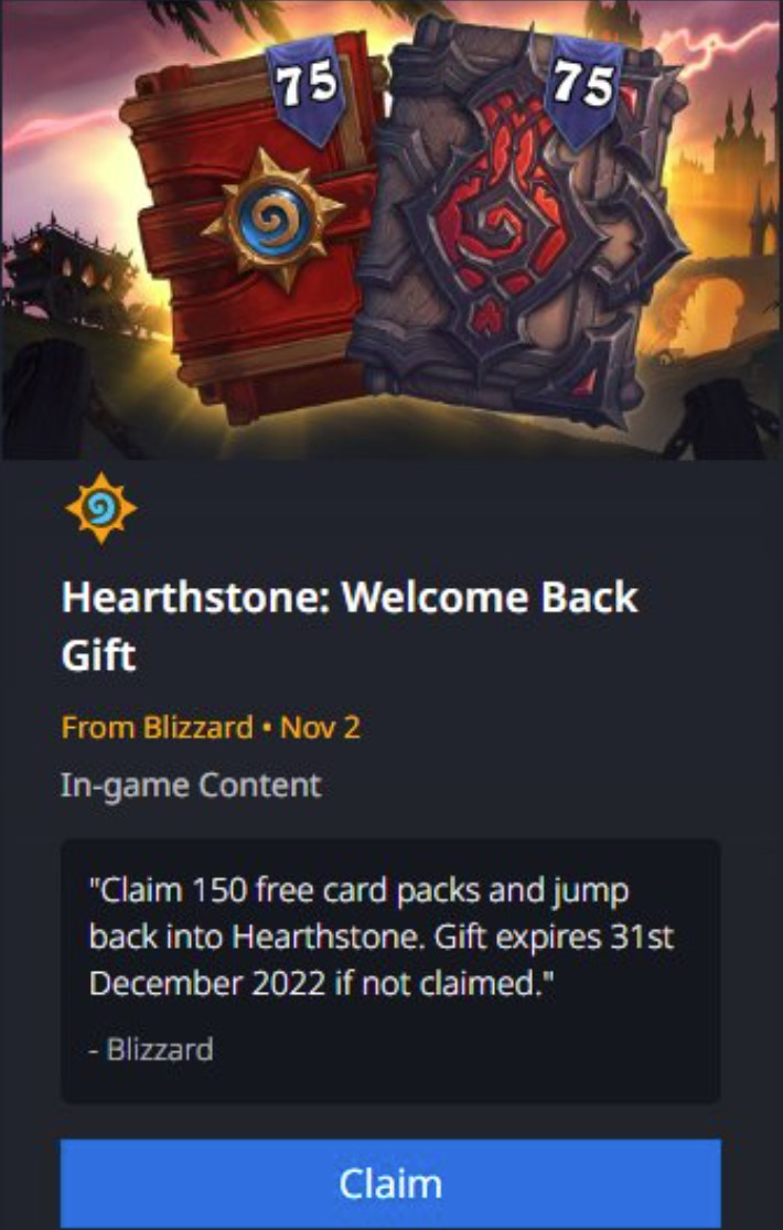 近几天外服时不时有人表示收到了卡包礼物,最多的有75标准+75纳斯利亚堡=150包,这和几个月前的回归奖励试点如出一辙。今晨外服官网有蓝贴正式确认了,这么丰厚令人羡慕嫉妒恨的事成真了。不过目前还只是在部分地区上线,不包括国服。