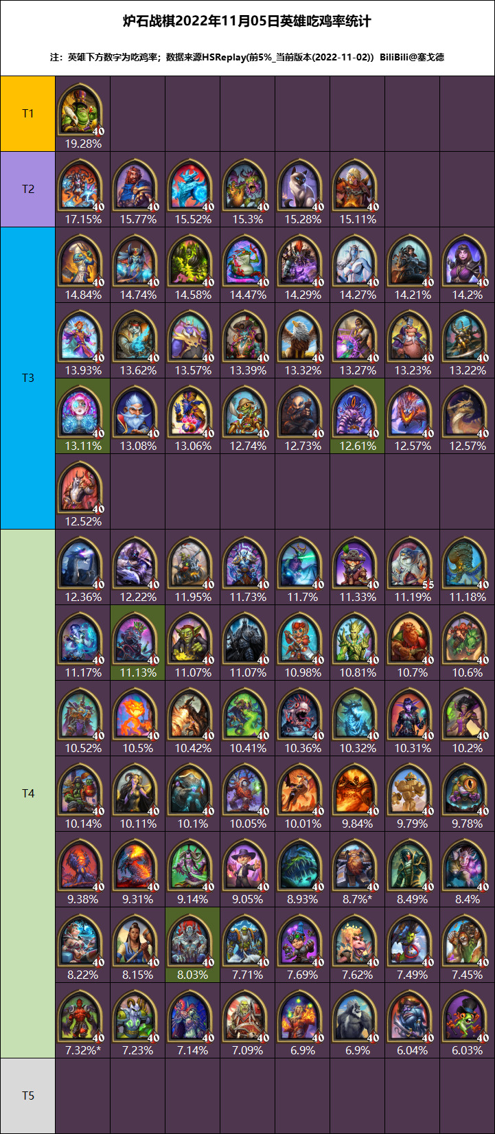 基本跟我预测的差不多,先聊一下新英雄典狱长,真的是菜的离谱,无论中位局还是高分段均场排名都是倒数,要死9个随从才能额外+1+1,早期几乎派不上任何作用,中期帮助有限几乎跟白板差不多,正常节奏10费了还搁那+2+2。相对的看看大范中期拿3个怪稳定+6+3,小火苗点几本+几,而后期需要配合特殊阵容例如亡语野兽和海盗跳操才有较快成长,技能最后也就点点瑞文,你要搞狂战那亡语肯定养的少,技能属性又堆不上去;而且还是3-6甲,任务难度还是+5%那级的,而大范和小火苗都是5-8甲任务-5%难度的,设计师不是真以为它很厉害吧?我记得年初暴雪设计师说之后新版本都会同时推2个英雄,1个有强度1个有趣,憋了这么久才1个新英雄,又没强度又没趣,唉