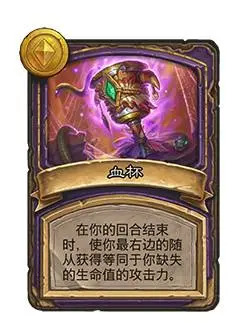 血杯在版本预测时我觉得这奖励有毒,第一眼看的时候就感觉什么傻杯奖励,要养圣盾狂战就必须放在末号位,血少收益才高,但血少了可能又不敢把狂战放最后;但这几天玩下来感觉因为任务简单,出的早,锁血很厉害,很容易把所有随从的攻击都堆高一遍,即便鲍勃发牌差,缺核心,也有机会跟别人强行一换一