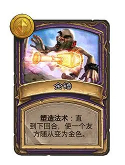 金锤 我记得是中等难度的任务,相当于雷诺技能,但整体会比较灵活,比如你这回合来了熊妈可以点金熊妈买点野兽混一混,下回合突然发了狼爹+瑞文,可以再点金瑞文。 (11月5日,截至今天该任务奖励还有bug,你点金纳迦那个25能保留塑造法术的随从,之后点任何随从都会变成永久效果,但利用bug机制不鼓励)