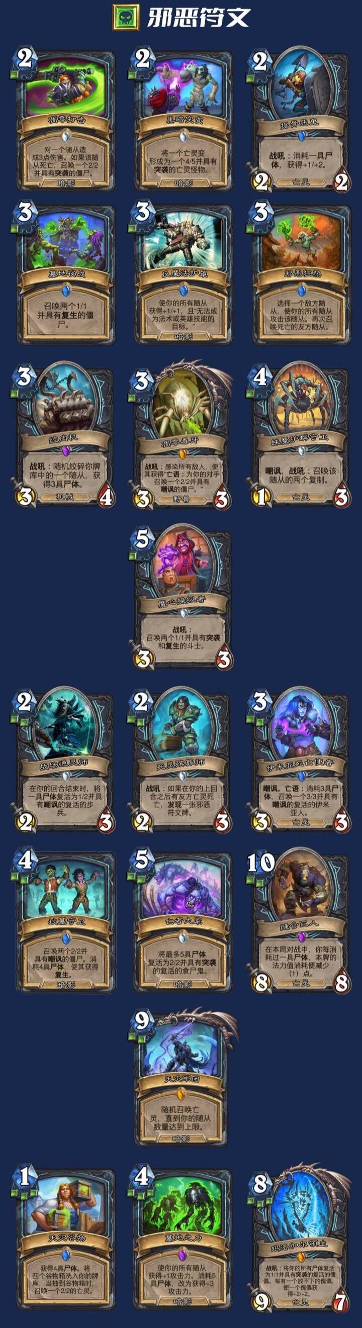 双邪符文增加了防御能力和巨人,但是前期消耗尸体的速度也明显加快,很多牌存在卡手的风险。可能需要抉择,无脑all in是会断尸体的,如果一费113两费战场通灵师,四五费就很可能打不出上限。