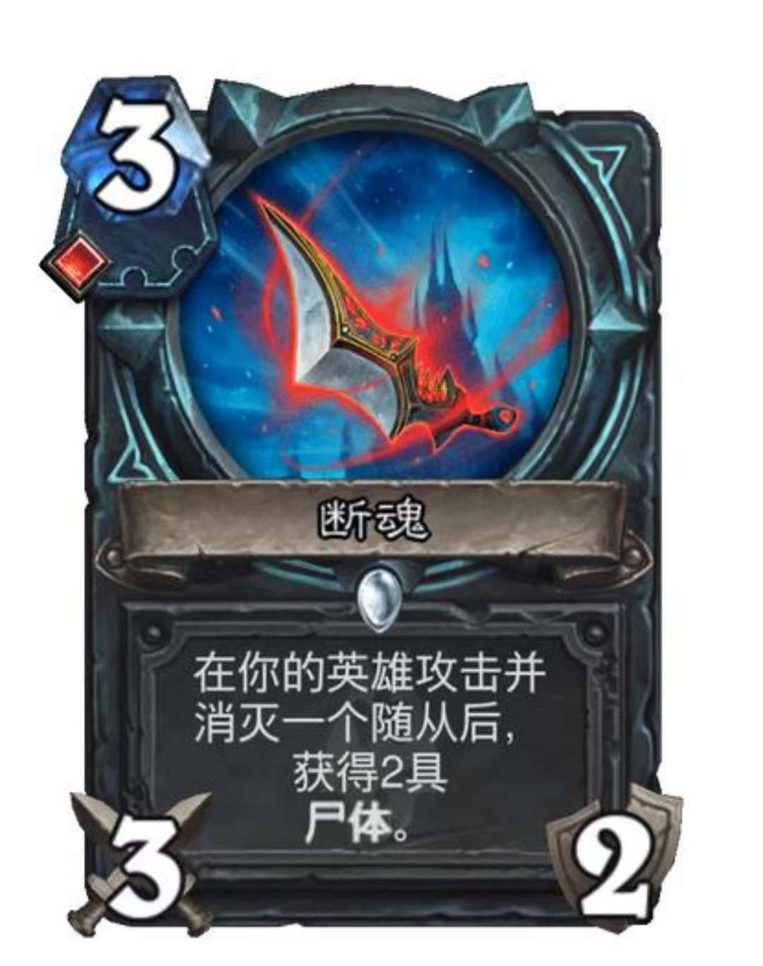 点评:费用上不占优势的一张场面卡,适合于走亡语体系的后期dk卡组携带